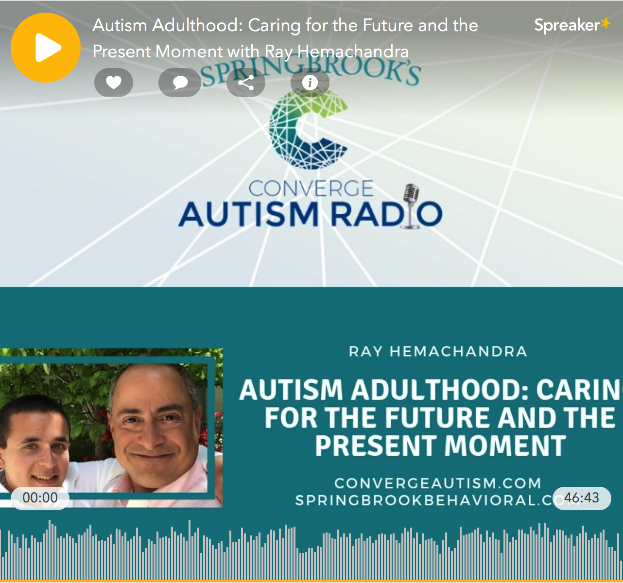 Earlier this week I recorded a podcast with Melanie Vann for Springbrook’s Converge Autism Radio. It posted today. The podcast title is taken from my recent blog post, Autism Adulthood: Caring for the Future and the Present Moment, which the generous interviewer, Melanie, had just read when we had the conversation. However lovely that title is, though—and I obviously liked it for the article—it’s somewhat misleading here. Autism adulthood and parenting are certainly discussed, but there is at least as much general material about neurodiversity, autism acceptance, and parenting and working with autistic children.